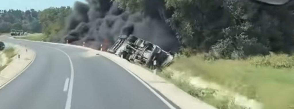 Цистерна која превезувала нафта, претпладнево излетала од регионалниот пат Гевгелија – Богданци и се превртела, по што дошло до истекување на нафта и нејзино палење.